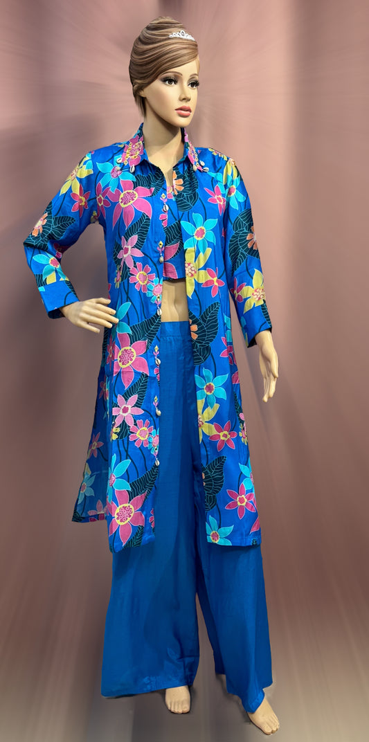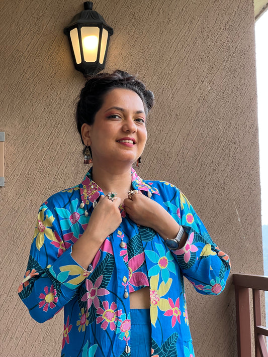 Blue Floral Jacket Co-ord Set – Indira Azure