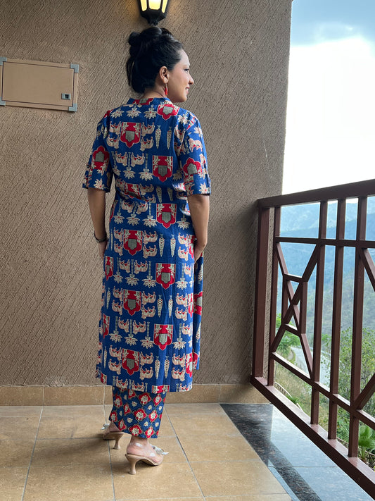 "Blue Pichwai Cow Print Kurta Set for Women – Neel Kamdhenu Long Co-Ord Set"