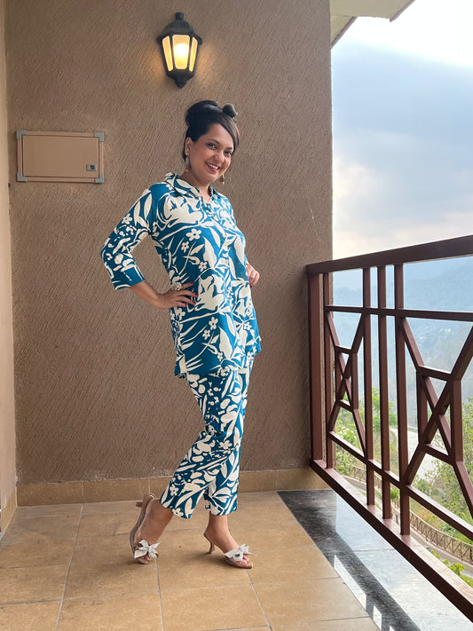 Sky Blue Printed Co-ord Set for Women – Niva Sky