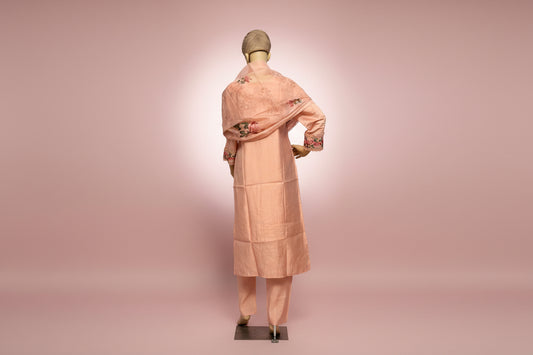 "Blush Pink Kurta Set with Dupatta in Chiffon – Rosé Meher "