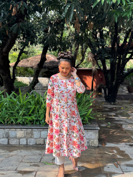 Floral Print Straight Kurta Set in Cotton – Rosé Bloom